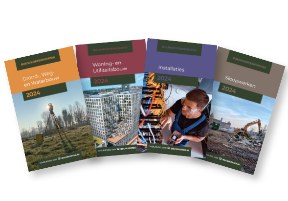 Bij een abonnement op Bouwkostenkompas ontvangt u eveneens de uitgaven van het Bouwkostenkompas. Dit zijn handzame overzichtelijke uitgaven met een groot aantal kostenkengetallen met prijsinvloeden.